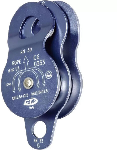 A Climbing Technology Twin Pulley egy dupla csiga mozgó oldalakkal és golyóscsapágyakkal. Statikus és dinamikus kötelekhez alkalmas 13 mm-es átmérőig. Megtalálja helyét mentéseknél és nehéz terhek eresztésénél vagy kihúzásánál.